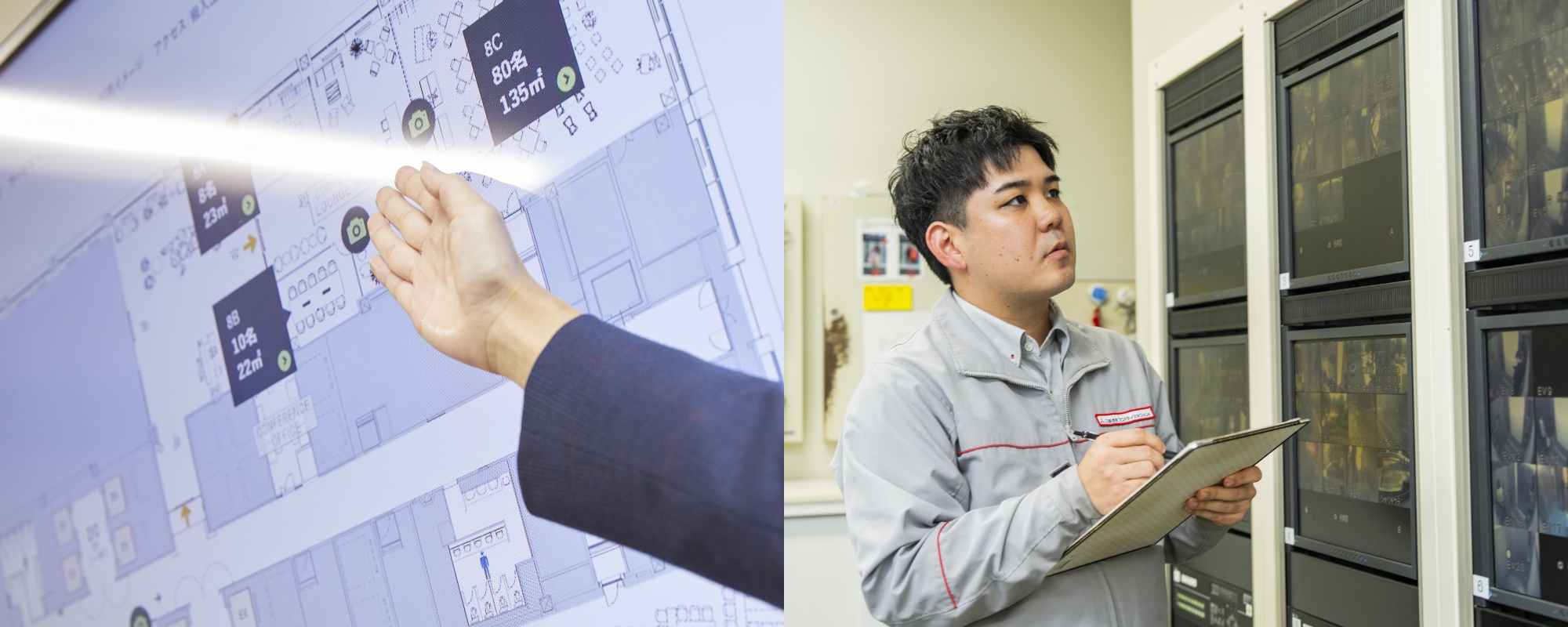 オフィスや商業施設、駐車場などあらゆる場所の安全と快適さを確保するため、警備会社や清掃会社、設備管理会社といった協力会社と密接に連携し、管理に必要なすべての業務をワンストップでマネジメントしています。コストバランスやサスティナビリティにも配慮し、個々のビルやエリアに合った管理業務を展開しています。