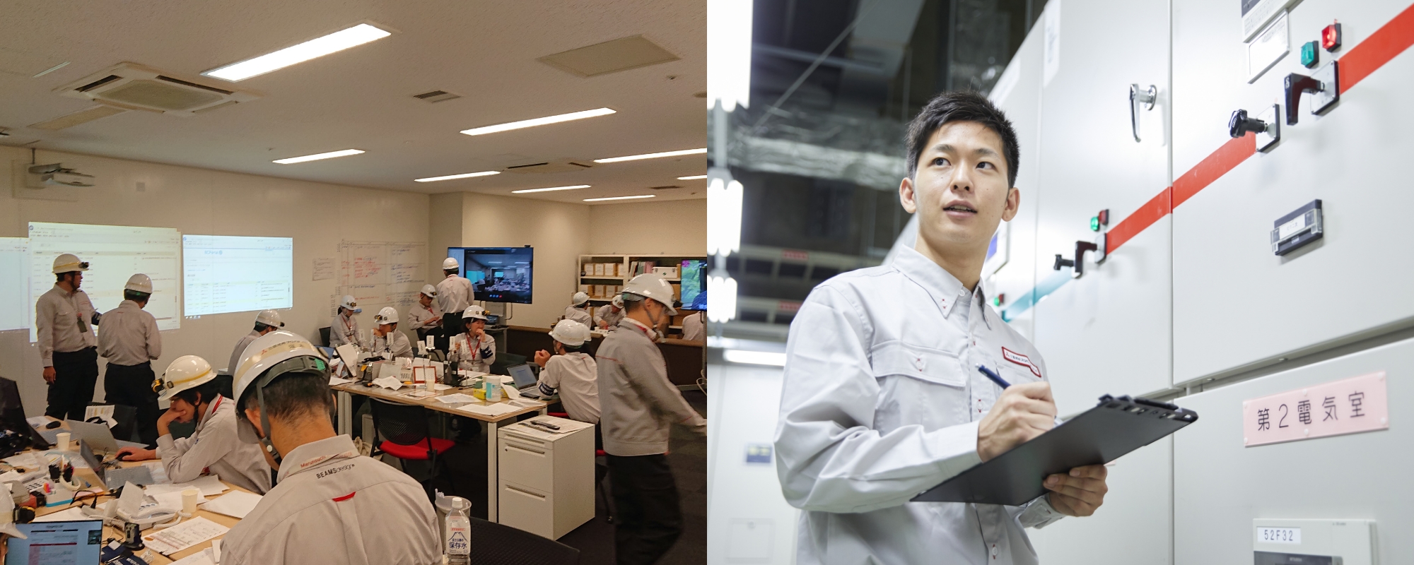 必ず起こるビルの経年劣化を事前に想定しながら、いつ、どのような工事を実施するべきかといった数十年単位のプランを計画し、実行していきます。テナント様や来館者に配慮し実施時期を変更するなど柔軟な対応ができるよう、あらゆる事態を想定し、適正な施工方法や安全管理などについてプロの視点で見極めています。