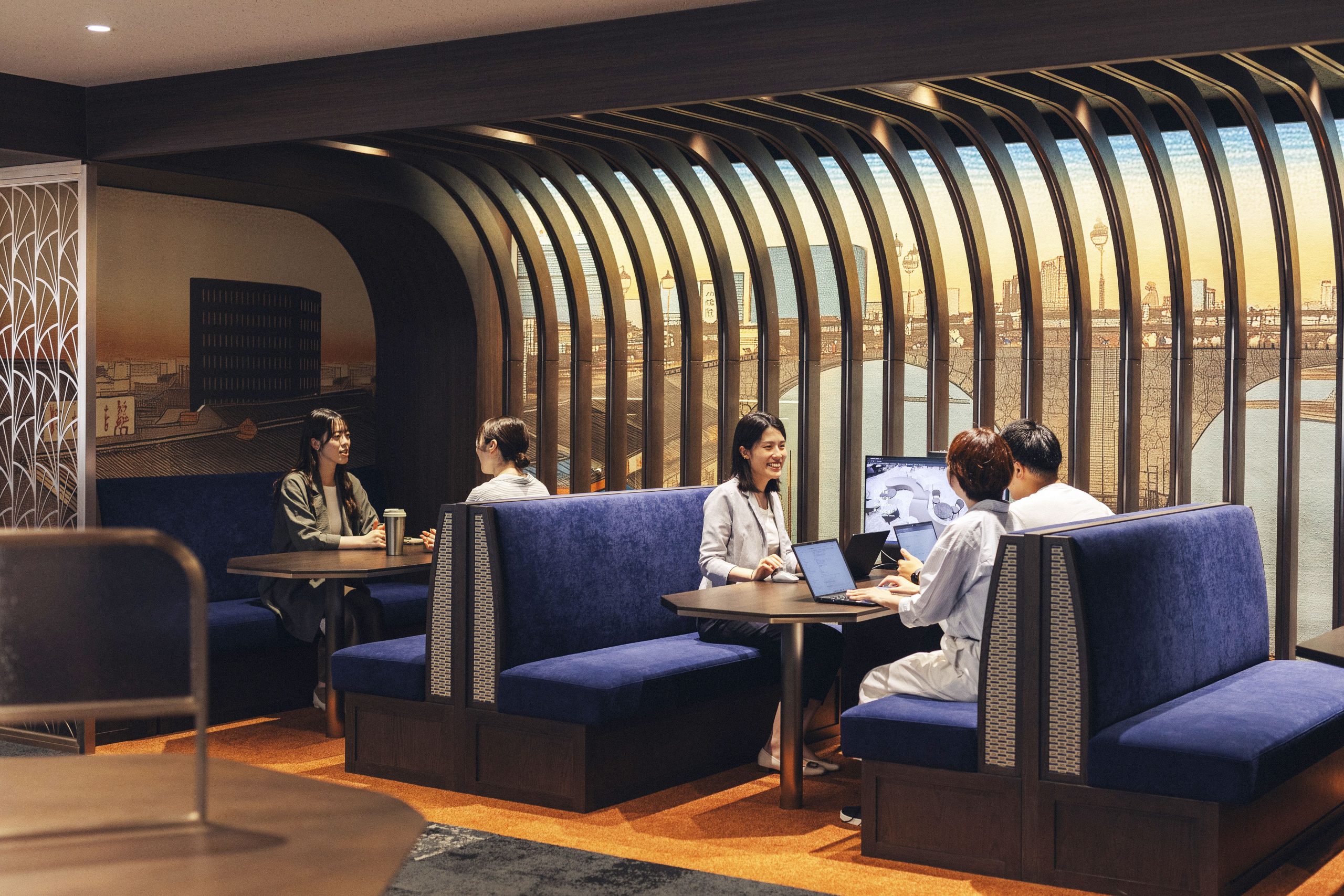 鉄道事業者向けのオフィスでは、手動改札台をモチーフにした什器設置や、バス停サインを調達して設置するという物語性を持つ空間提案が高く評価され、導入に至りました。