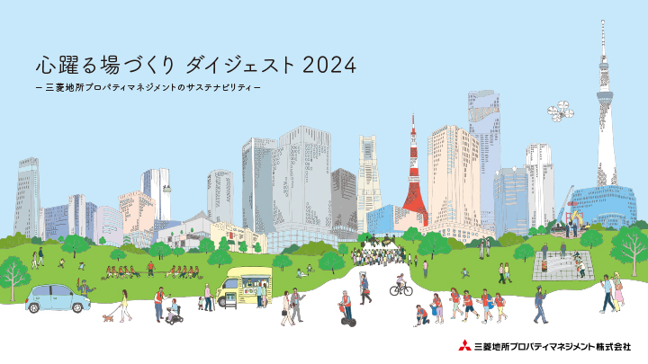 当社は、長きにわたりプロパティマネジメント事業に携わり、真に価値あるまちづくりを目指して取り組んでいます。当社を取り巻く環境と経済、社会の好循環を促進し、サステナビリティの実現をけん引することへの期待が急速に高まっている中で、2024年度には、当社初のサステナビリティレポート「心躍る場づくりダイジェスト 2024」を発行しました。